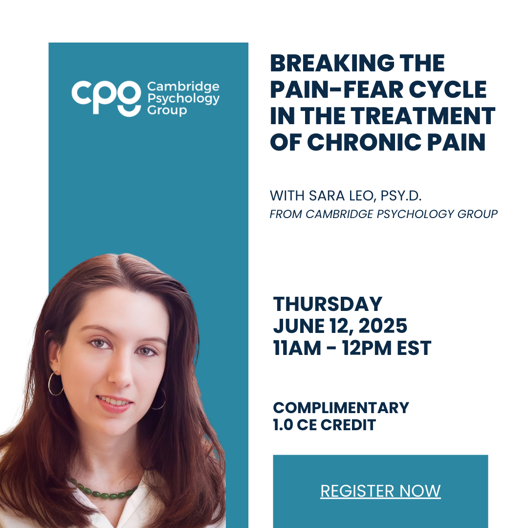 In this one-hour, clinically-oriented webinar, participants will learn about the role that the pain-fear cycle has in triggering, worsening, and perpetuating chronic pain. This presentation will teach mental health clinicians to evaluate the roles of associated cues and faulty threat assessments related to a client’s pain. Clinicians will learn practical interventions to help clients convey messages of safety to their brains, engage in gentle exposures and experiential learning, and change the way their brains respond to perceived threats around pain. The integration of pain reprocessing therapy (PRT) with other pain management strategies including CBT and mindfulness-based techniques will be discussed.